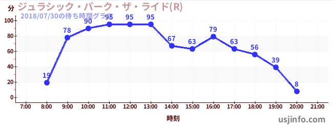 • ジュラシック・パーク・ザ・ライド(R)$B$N(B2018年07月30日の待ち時間