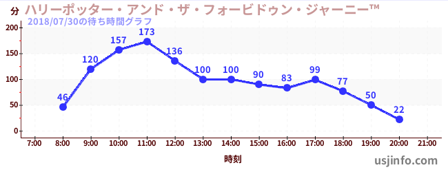 • ハリーポッター・アンド・ザ・フォービドゥン・ジャーニー™$B$N(B2018年07月30日の待ち時間