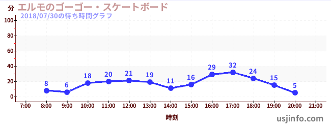 • エルモのゴーゴー・スケートボード$B$N(B2018年07月30日の待ち時間