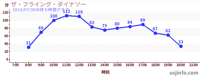 • ザ・フライング・ダイナソー$B$N(B2018年07月30日の待ち時間