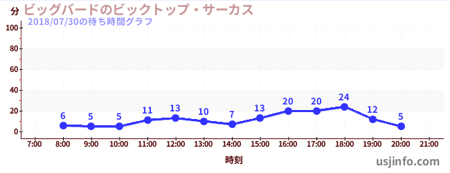 • ビッグバードのビックトップ・サーカス$B$N(B2018年07月30日の待ち時間