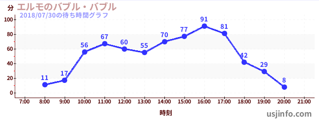 • エルモのバブル・バブル$B$N(B2018年07月30日の待ち時間