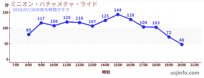 • ミニオン・ハチャメチャ・ライド$B$N(B2018年07月30日の待ち時間