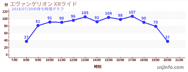 • エヴァンゲリオン XRライド$B$N(B2018年07月30日の待ち時間