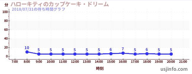 • ハローキティのカップケーキ・ドリーム$B$N(B2018年07月31日の待ち時間