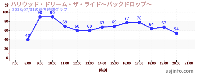 • ハリウッド・ドリーム・ザ・ライド〜バックドロップ〜$B$N(B2018年07月31日の待ち時間