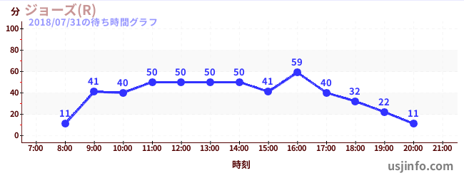 • ジョーズ(R)$B$N(B2018年07月31日の待ち時間
