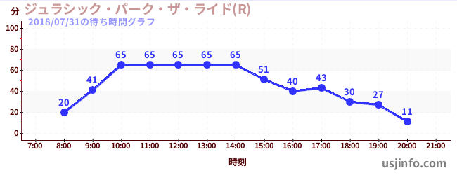 • ジュラシック・パーク・ザ・ライド(R)$B$N(B2018年07月31日の待ち時間
