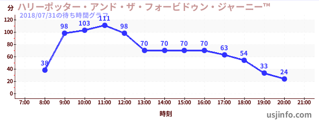 • ハリーポッター・アンド・ザ・フォービドゥン・ジャーニー™$B$N(B2018年07月31日の待ち時間