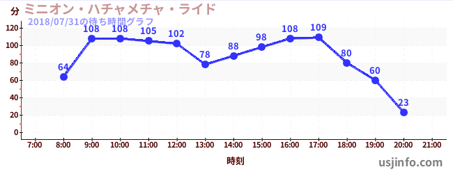 • ミニオン・ハチャメチャ・ライド$B$N(B2018年07月31日の待ち時間
