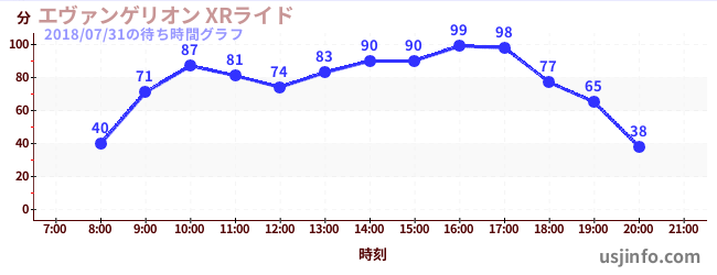 • エヴァンゲリオン XRライド$B$N(B2018年07月31日の待ち時間