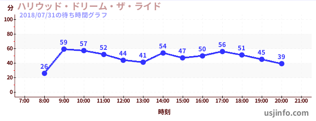 • ハリウッド・ドリーム・ザ・ライド$B$N(B2018年07月31日の待ち時間