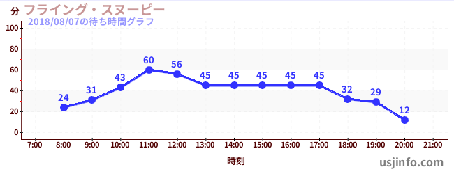 • フライング・スヌーピー$B$N(B2018年08月07日の待ち時間