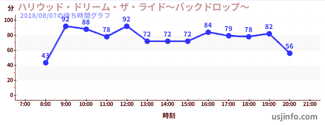 • ハリウッド・ドリーム・ザ・ライド〜バックドロップ〜$B$N(B2018年08月07日の待ち時間