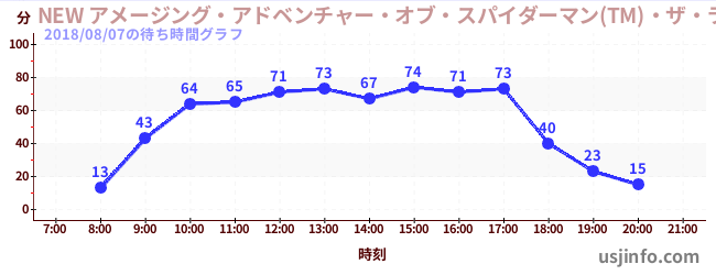 • NEW アメージング・アドベンチャー・オブ・スパイダーマン(TM)・ザ・ライド 4K3D$B$N(B2018年08月07日の待ち時間