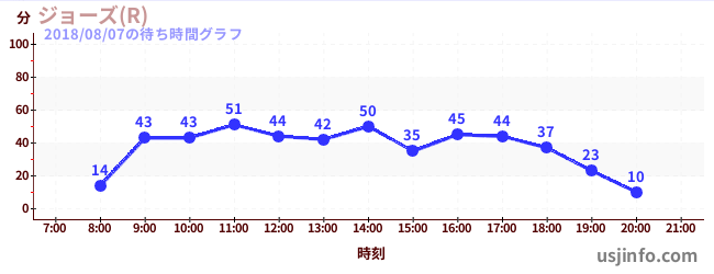 • ジョーズ(R)$B$N(B2018年08月07日の待ち時間