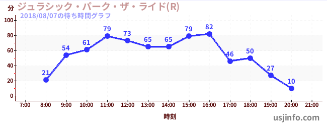 • ジュラシック・パーク・ザ・ライド(R)$B$N(B2018年08月07日の待ち時間