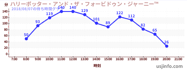 • ハリーポッター・アンド・ザ・フォービドゥン・ジャーニー™$B$N(B2018年08月07日の待ち時間
