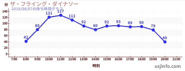 • ザ・フライング・ダイナソー$B$N(B2018年08月07日の待ち時間