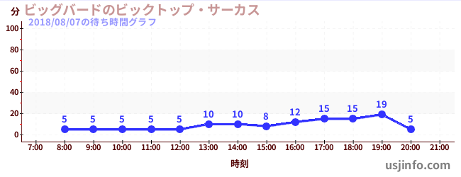 • ビッグバードのビックトップ・サーカス$B$N(B2018年08月07日の待ち時間