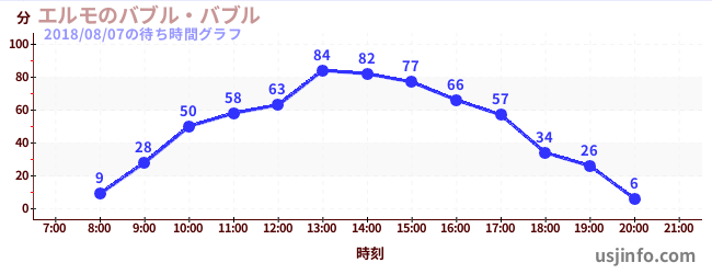 • エルモのバブル・バブル$B$N(B2018年08月07日の待ち時間