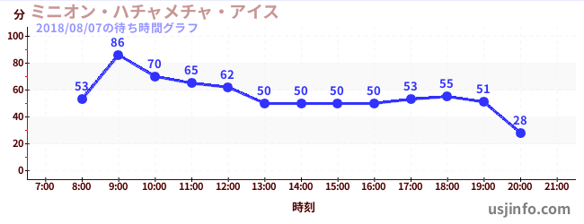 • ミニオン・ハチャメチャ・アイス$B$N(B2018年08月07日の待ち時間