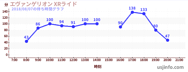 • エヴァンゲリオン XRライド$B$N(B2018年08月07日の待ち時間