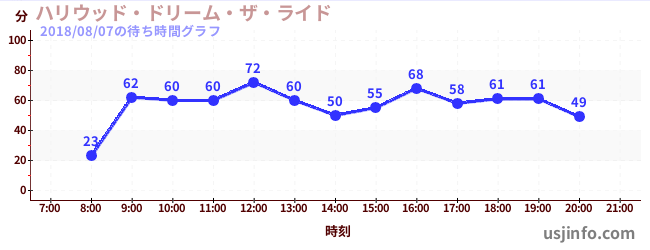 • ハリウッド・ドリーム・ザ・ライド$B$N(B2018年08月07日の待ち時間