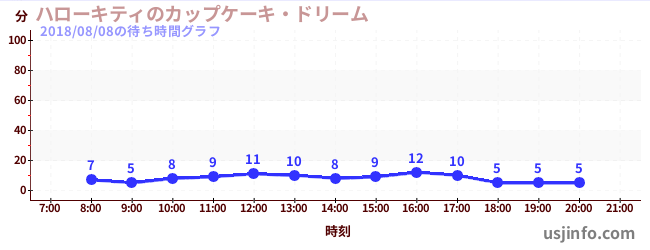 • ハローキティのカップケーキ・ドリーム$B$N(B2018年08月08日の待ち時間