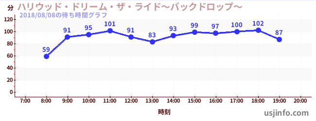 • ハリウッド・ドリーム・ザ・ライド〜バックドロップ〜$B$N(B2018年08月08日の待ち時間
