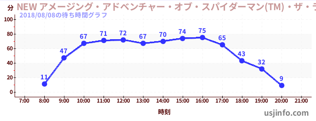 • NEW アメージング・アドベンチャー・オブ・スパイダーマン(TM)・ザ・ライド 4K3D$B$N(B2018年08月08日の待ち時間