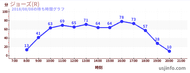 • ジョーズ(R)$B$N(B2018年08月08日の待ち時間