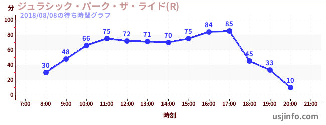 • ジュラシック・パーク・ザ・ライド(R)$B$N(B2018年08月08日の待ち時間