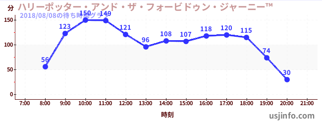 • ハリーポッター・アンド・ザ・フォービドゥン・ジャーニー™$B$N(B2018年08月08日の待ち時間