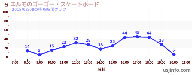 • エルモのゴーゴー・スケートボード$B$N(B2018年08月08日の待ち時間