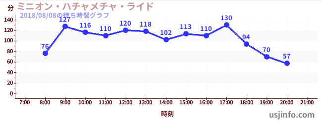 • ミニオン・ハチャメチャ・ライド$B$N(B2018年08月08日の待ち時間
