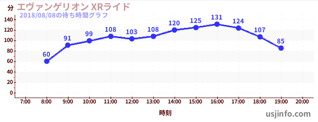 • エヴァンゲリオン XRライド$B$N(B2018年08月08日の待ち時間