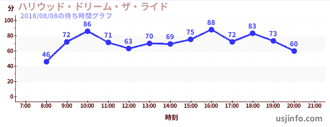 • ハリウッド・ドリーム・ザ・ライド$B$N(B2018年08月08日の待ち時間