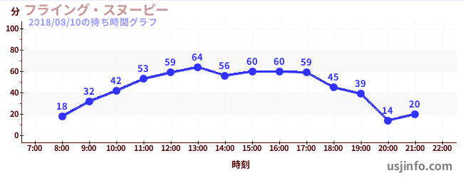 • フライング・スヌーピー$B$N(B2018年08月10日の待ち時間