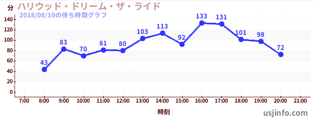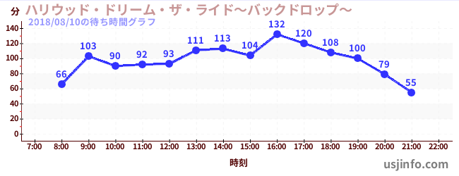 • ハリウッド・ドリーム・ザ・ライド〜バックドロップ〜$B$N(B2018年08月10日の待ち時間