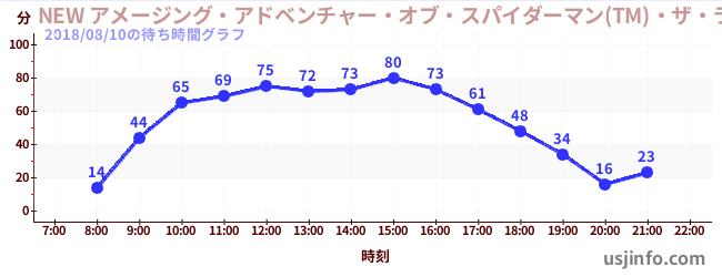 • NEW アメージング・アドベンチャー・オブ・スパイダーマン(TM)・ザ・ライド 4K3D$B$N(B2018年08月10日の待ち時間