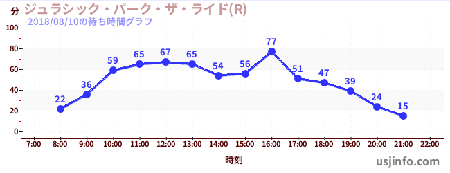 • ジュラシック・パーク・ザ・ライド(R)$B$N(B2018年08月10日の待ち時間