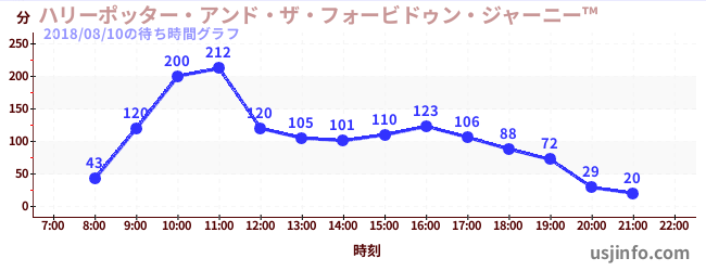 • ハリーポッター・アンド・ザ・フォービドゥン・ジャーニー™$B$N(B2018年08月10日の待ち時間