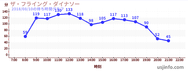 • ザ・フライング・ダイナソー$B$N(B2018年08月10日の待ち時間