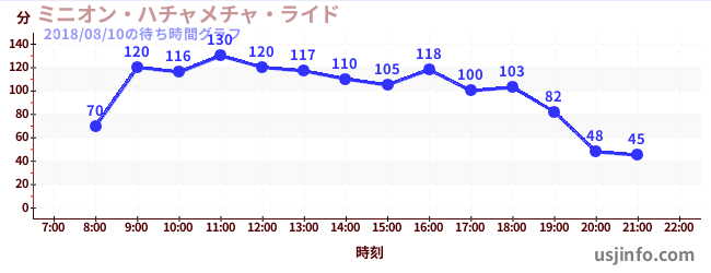 • ミニオン・ハチャメチャ・ライド$B$N(B2018年08月10日の待ち時間