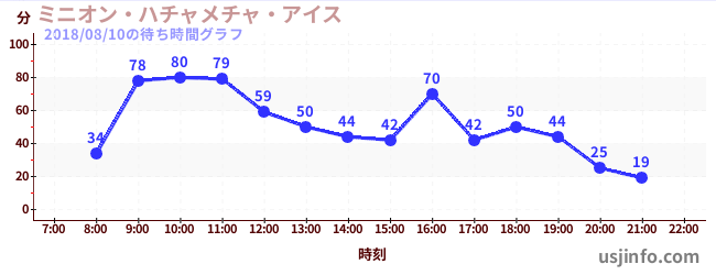 • ミニオン・ハチャメチャ・アイス$B$N(B2018年08月10日の待ち時間