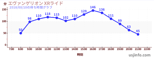 • エヴァンゲリオン XRライド$B$N(B2018年08月10日の待ち時間