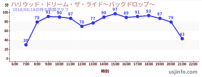 • ハリウッド・ドリーム・ザ・ライド〜バックドロップ〜$B$N(B2018年08月18日の待ち時間