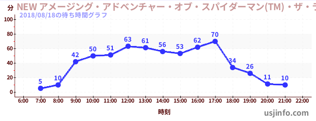 • NEW アメージング・アドベンチャー・オブ・スパイダーマン(TM)・ザ・ライド 4K3D$B$N(B2018年08月18日の待ち時間