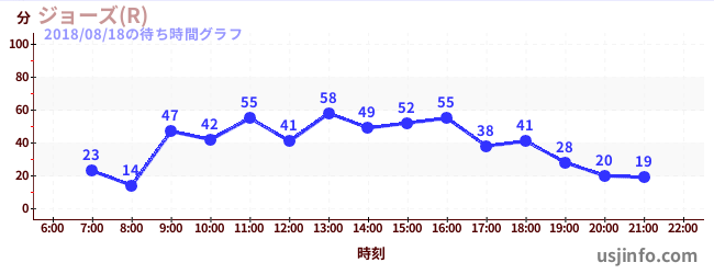 • ジョーズ(R)$B$N(B2018年08月18日の待ち時間